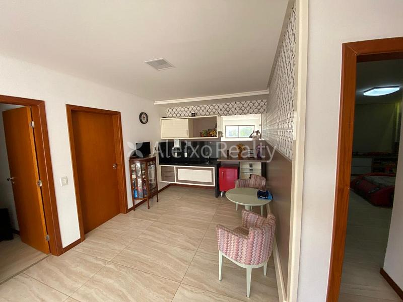 O imóvel dispõe de 5 quartos, sendo 3 suítes, além de 2 salas amplas que permitem a criação de diferentes ambientes de convivência. A residência conta ainda com 7 banheiros no total, proporcionando comodidade para moradores e visitantes.